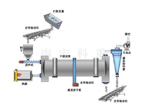1、采用順流干燥方式,煙氣與濕物料由同一側進入干燥機,可以利用高溫煙氣獲得很高的蒸汽強度,干燥機出口溫度低,熱效率高,單機處理量大。