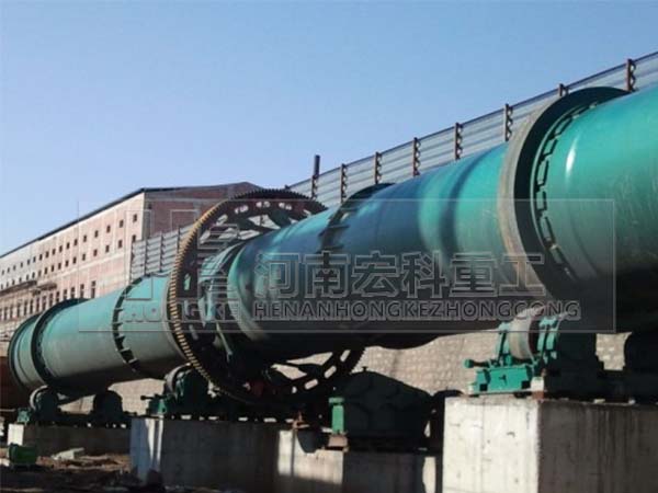 回轉窯的窯體與水平面呈3%-4%(正弦)的斜度,整個窯體通過兩個輪帶支撐在相應的托輪裝置上,在窯體軸向方向上通過窯尾的擋輪裝置防止其上下竄動;其傳動過程是變頻電機通過減速機及其配套聯軸器帶動小齒輪轉動,小齒輪與筒體中部固定的大齒圈相嚙合,最終大齒圈帶動筒體作回轉運動。